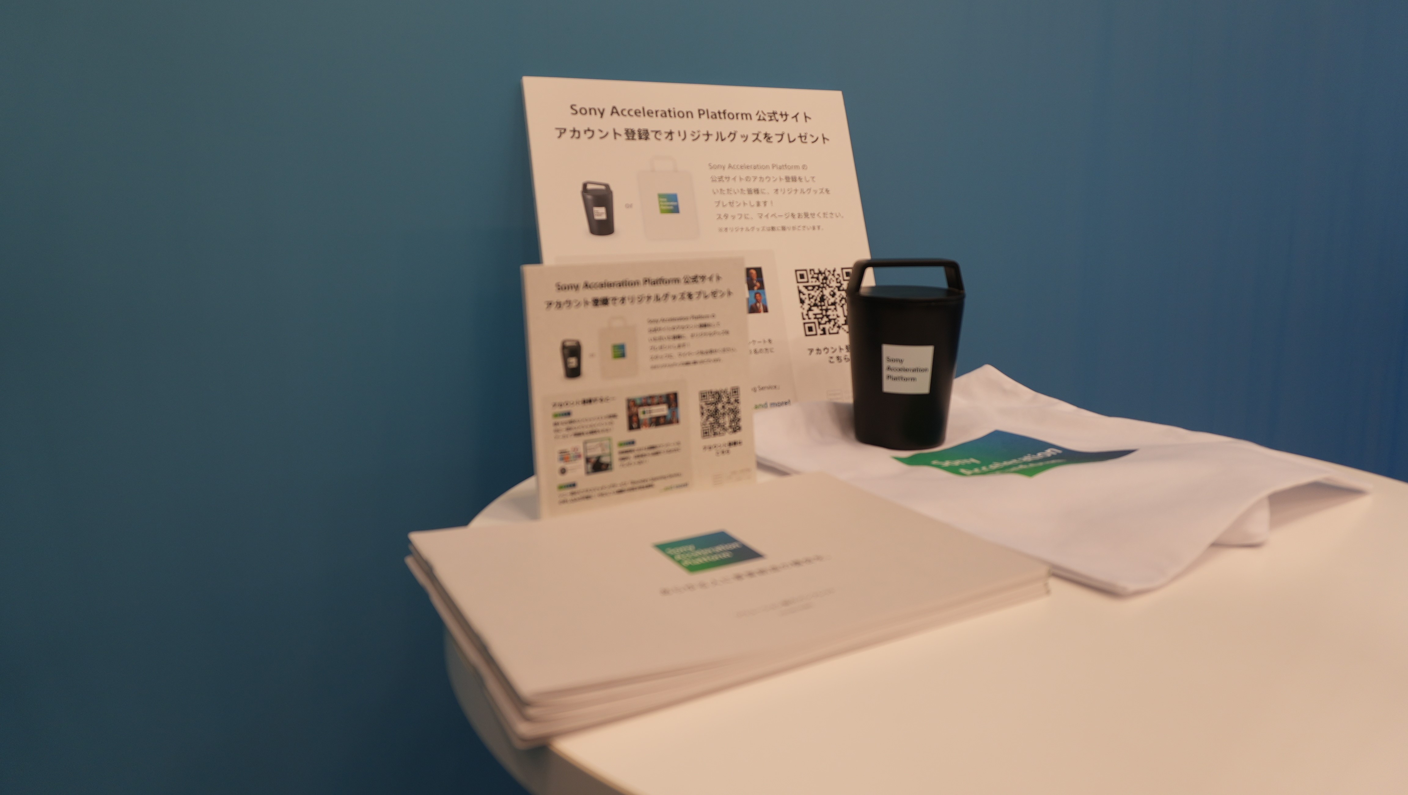 また、Sony Acceleration Platformの公式アカウントにご登録の上、マイページをご提示いただいた方に、先着でSony Accleration Platformオリジナルグッズ(トートバックもしくはタンブラー ※)をお配りしております。こちらもお楽しみに!