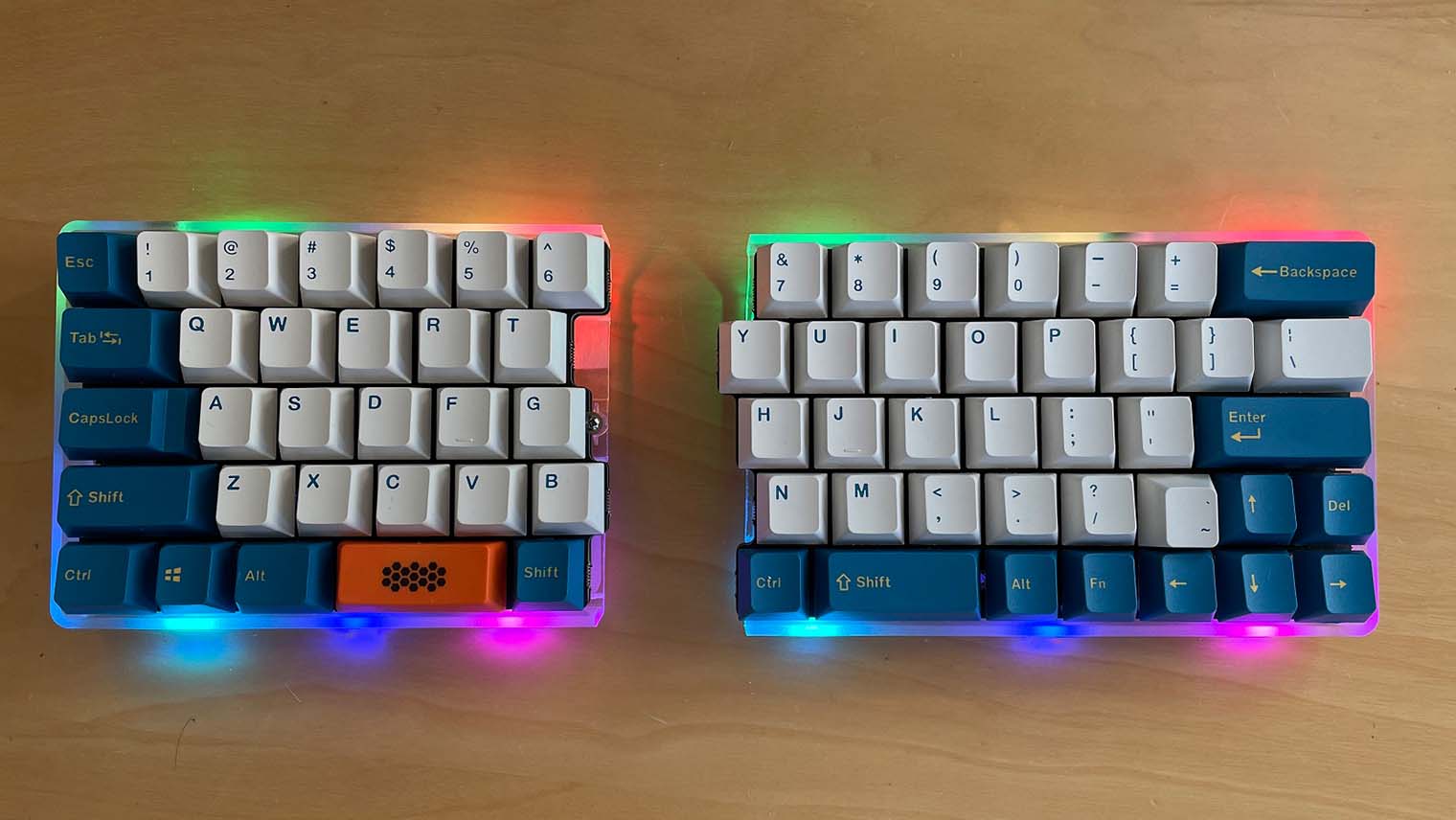 休日は、趣味と実益を兼ねて、時々自分用のオリジナルガジェットを作っています。例えば最近では『左右分割型の完全無線キーボード』を、回路から設計し、フルスクラッチで製作しました。