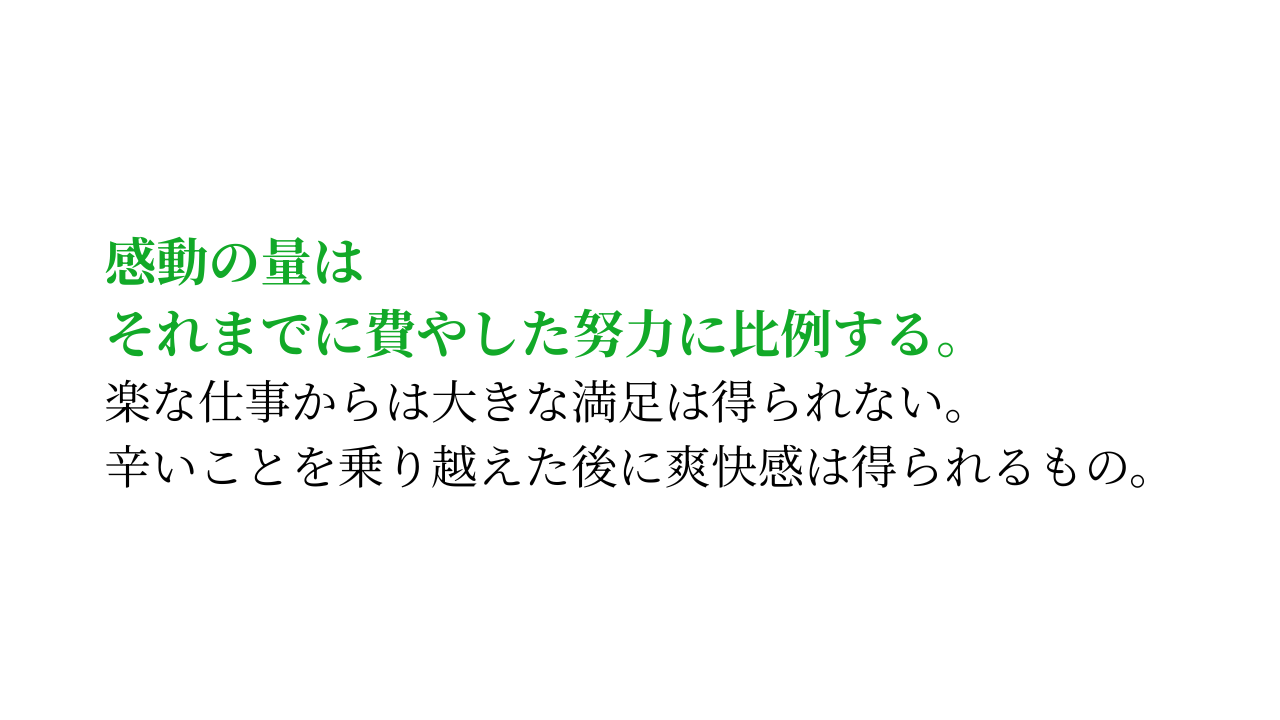 楽な仕事では味わえない、脳が震えるような爽快感。それは一生モノの財産になります。